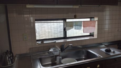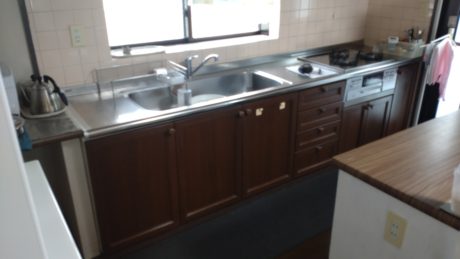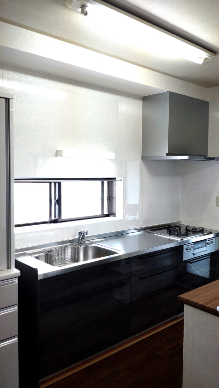 | お客様のご要望 | キッチンが古くなり、新しいものと取替えたく、吊戸棚は無くして、スッキリしたいとのご要望でした。 |
