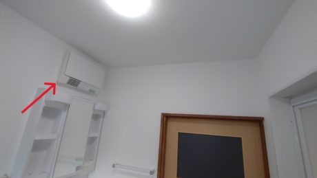 洗面所暖房機 設置完成写真 ↑